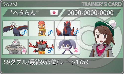 ポケモン剣盾考察 シングル構築記事 S8 最高最終レート18 最高最終順位261位 73戦56勝17敗 勝率76 7 海南大附属高校構築 カウンター受けサイクル と今季の雑感 ピヨピヨパンチ